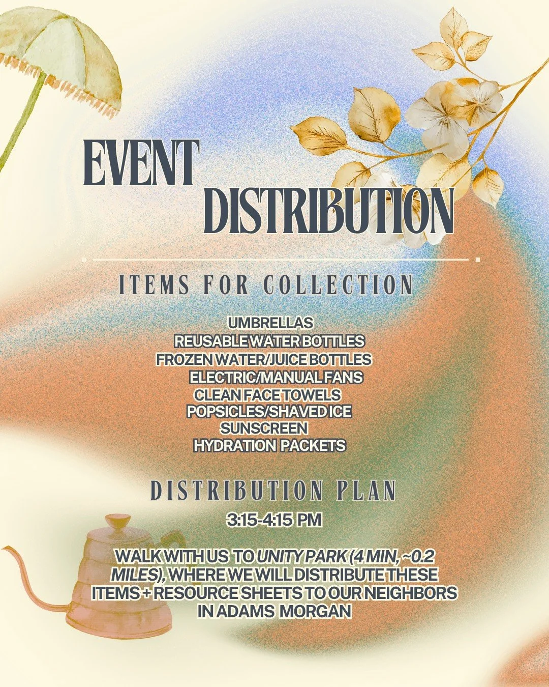As expected at any DMVB event, we strongly encourage all attendees to bring a heat relief item for our neighbors in need. Please join us post-event to distribute the resources and engage with folks at Unity Park (3:15pm).